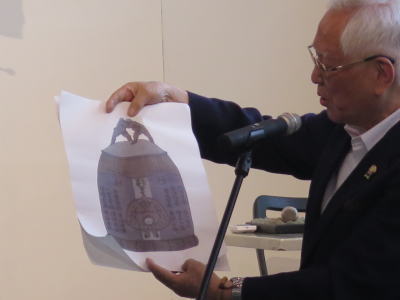 | 相撲甚句会による相撲甚句の披露 | 鐘の説明をする報土寺住職の朝倉俊氏 |